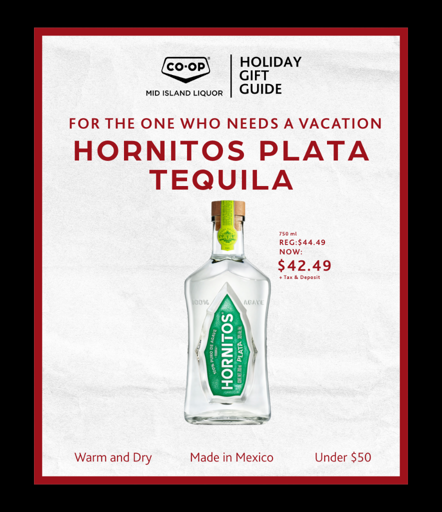 For The One Who Needs a Vacation – Hornitos Plata Tequila (Was $44.49, Now $42.49)