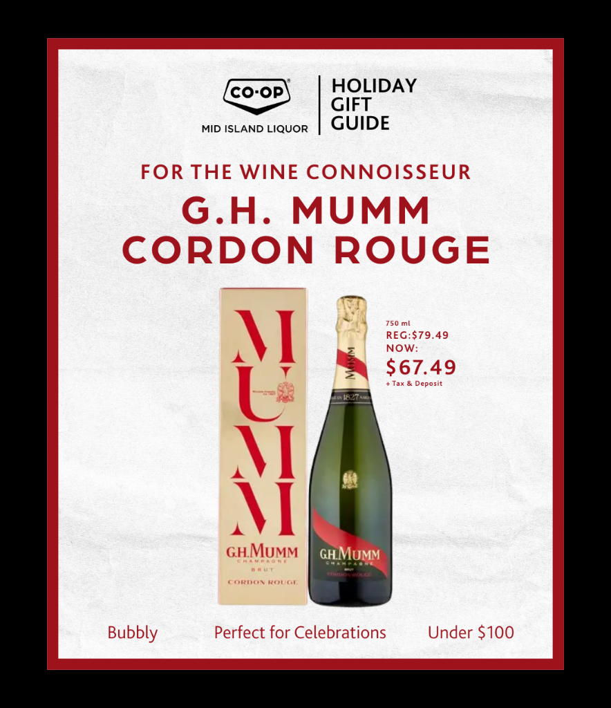 For The Wine Connoisseur – G.H. Mumm Cordon Rouge (Was $79.49, Now $67.49)