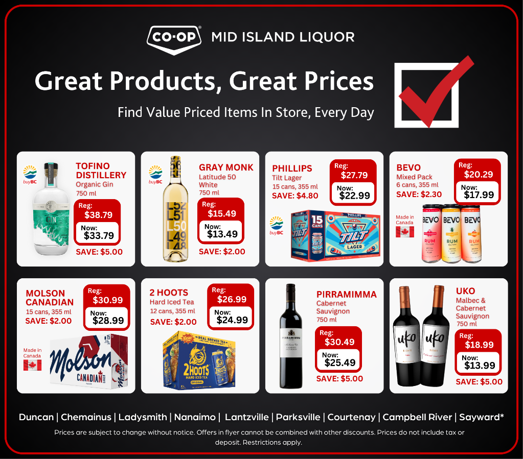 Visit any of our 17 Mid Island Liquor locations across Vancouver Island to discover unbeatable Every Day Low Price deals on hundreds of products in-store!